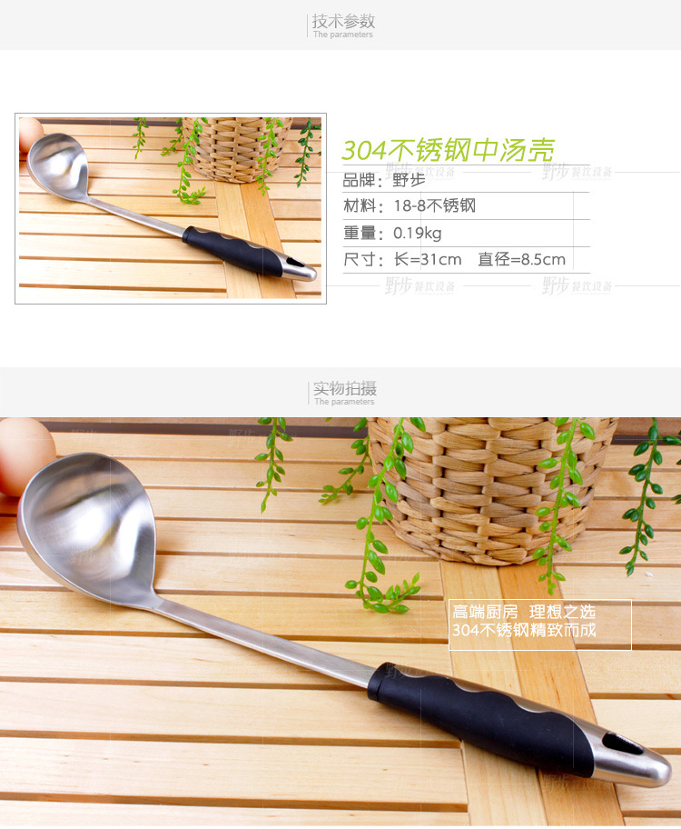 野步 18/8 304正品不锈钢汤壳 汤勺汤匙汤瓢粥勺 厨房工具 中